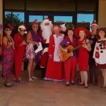 Hula dancers Tutti Fruiti and Dreamy Dramatic Dorothy performed while Lyrical Laurie led the Red Hot Mama choir at Kalama HeightsChristmas Caroling at Kalama Heights